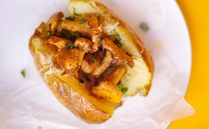 Молодой картофель с лисичками и сыром