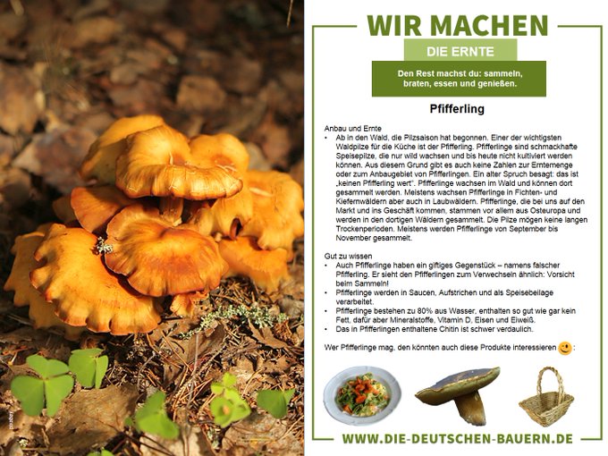 Лисички обычно завозят в Германию из Украины, Польши и России. Понятно, что транспортировка и хранение занимает некоторое время. Поэтому выбирать эти грибы в супермаркете нужно особенно тщательно.