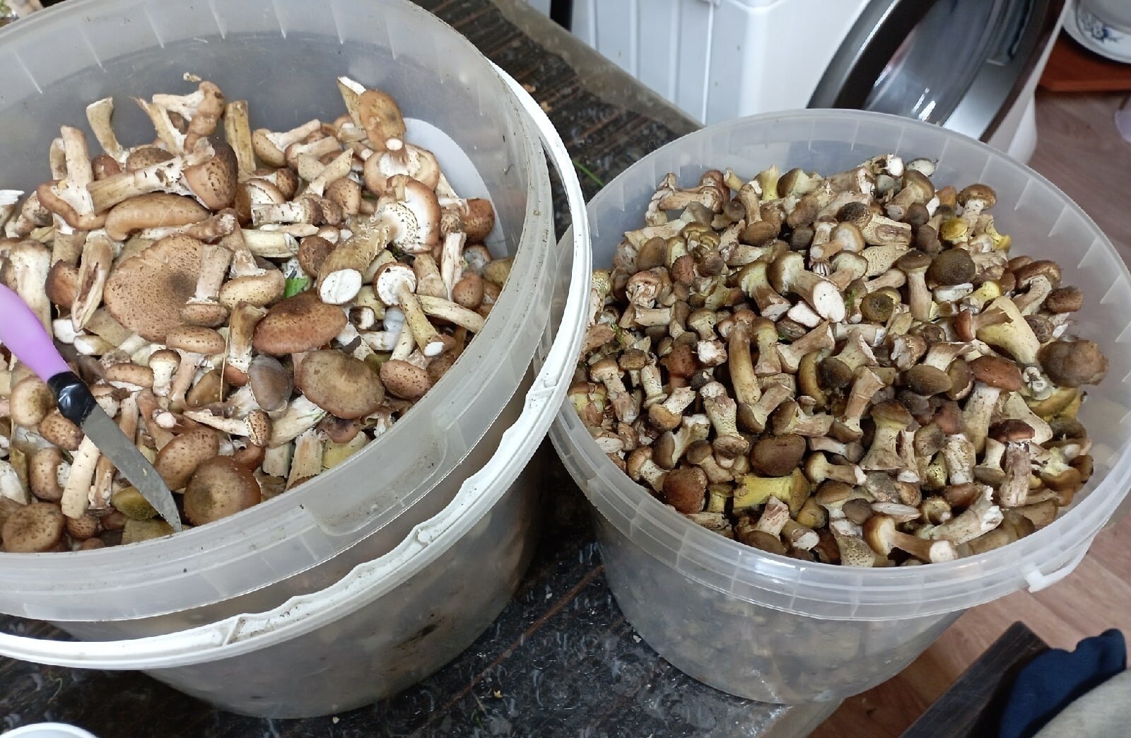 4. Мария Шмелева принесла два огромных ведра опят из двух лесов Зеленоградского района.