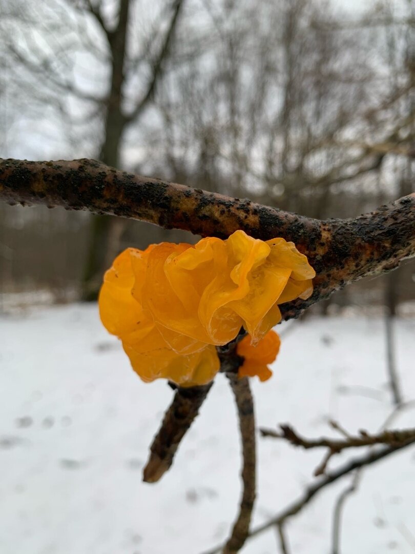 4 января Андрей отправился в лес между Веселовкой и Осиновкой. По пути ему попались не только зимние опята, но и дрожалки, которые грибники почти не собирают из-за их хрупкости. Однако этот товарищ вполне съедобен.