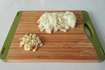 Шаг 1. Подготовьте все ингредиенты. Лук и чеснок нарежьте мелким кубиком, грибы — средним. Сыр натрите на мелкой терке. Бульон подогрейте до образования легкого пара.