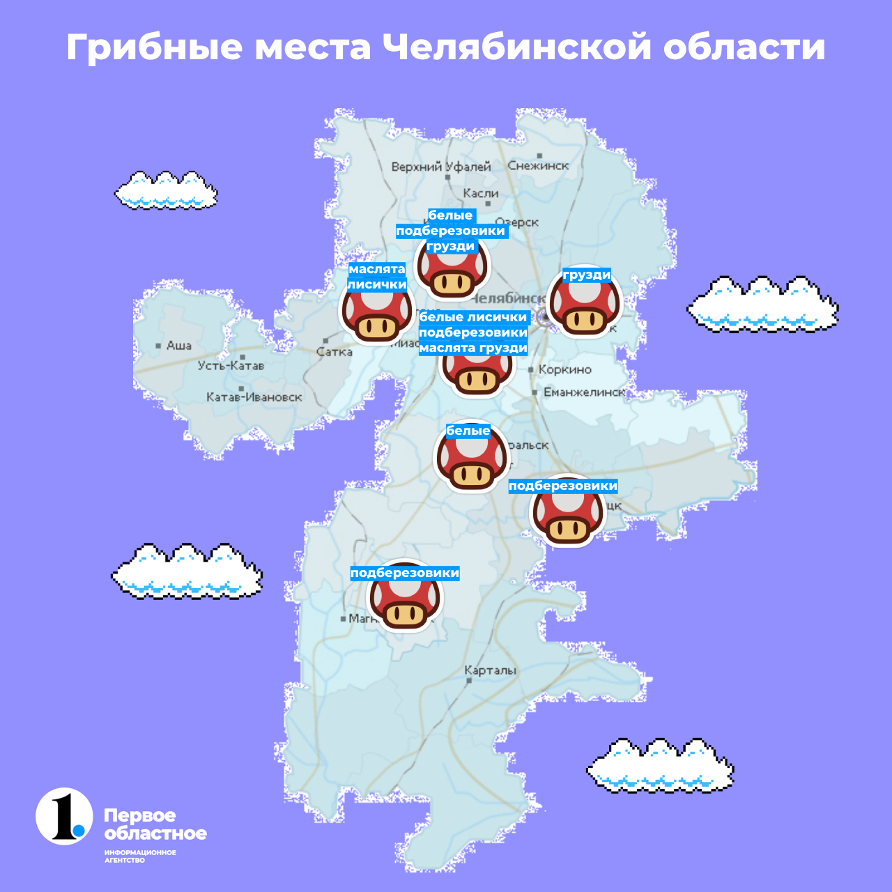 Жаркий и влажный август на Южном Урале спровоцировал рост грибов. Наверное, уже все видели в своих новостных лентах посты с лесными трофеями от друзей, коллег и совершенно случайных людей. Все они каким-то волшебным образом умудряются прогуляться по лесу в будни и собрать горы белых, подберезовиков и маслят, дразня офисных сотрудников. Если вы уже вдоволь на все это насмотрелись и твердо решили отправиться на тихую охоту в ближайшие выходные, то мы подготовили для вас карту грибных мест.
