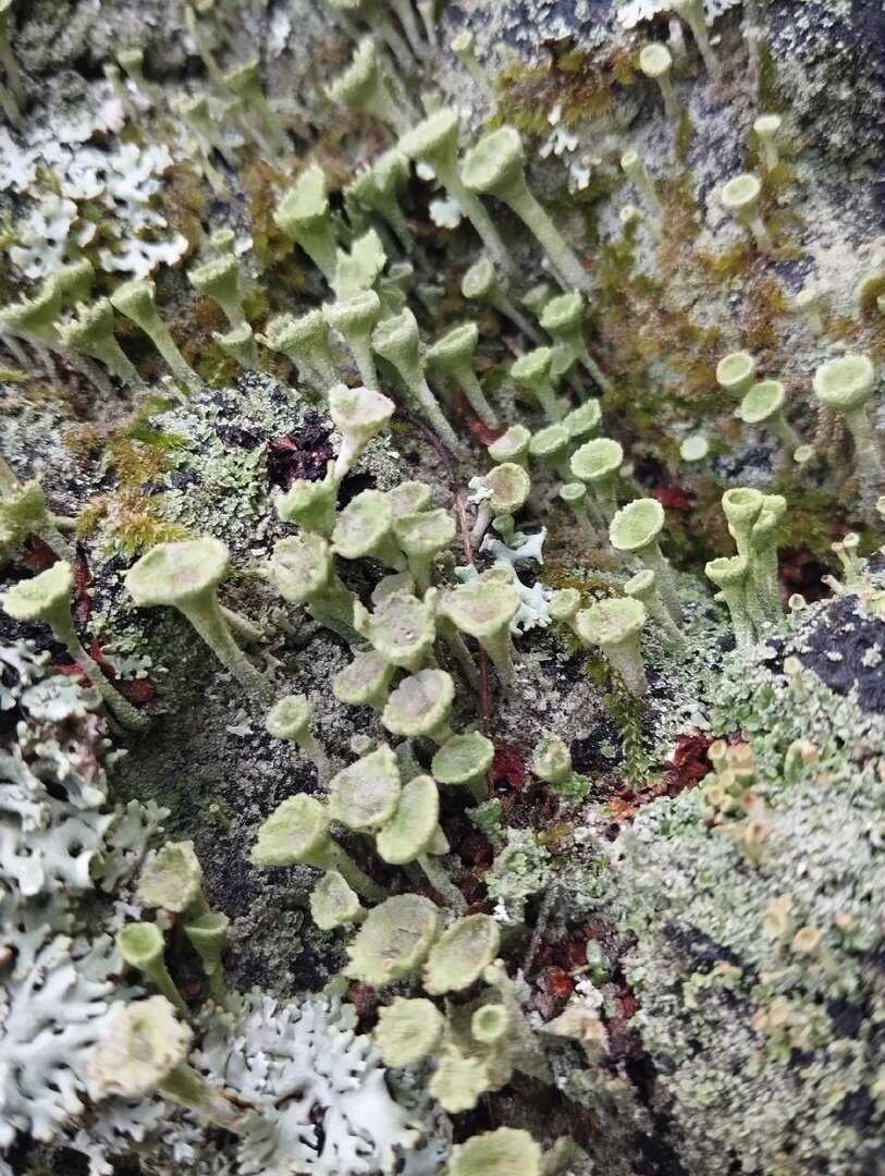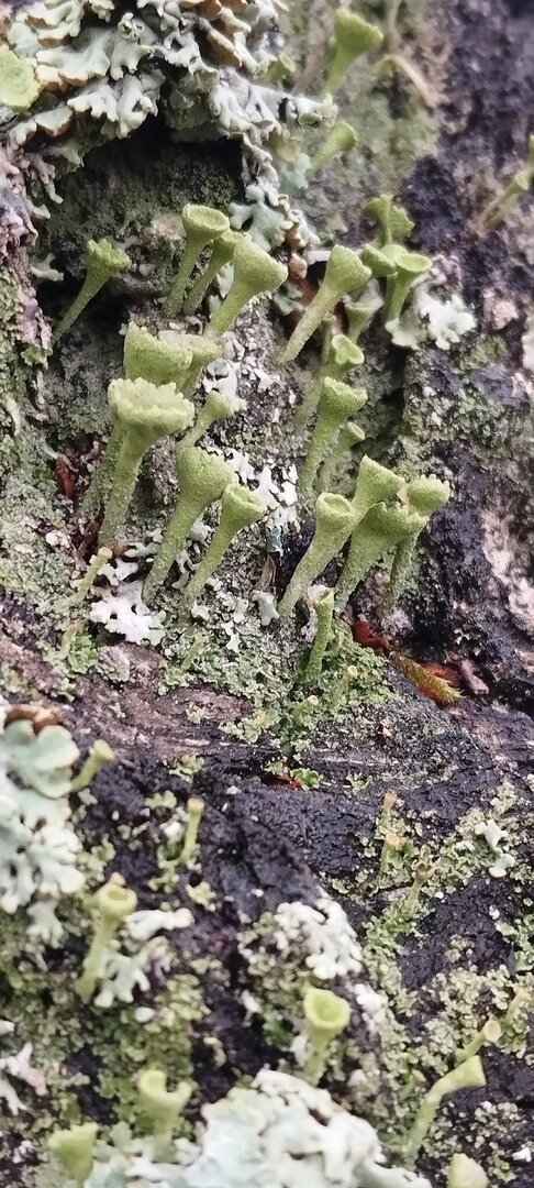 Лишайник, напоминающий уши мультяшного огра, — это кладония бахромчатая. Он представляет собой симбиоз сине-зелёной водоросли и гриба, любит селиться на старых пнях и поваленных деревьях. В народе его называют «кубками эльфов» и используют для декора, например, оформления природных композиций или создания украшений из эпоксидной смолы.