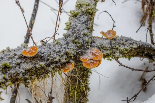 Так, фламмулину (зимний опенок) легко заметить издалека. У нее блестящая шляпка и жесткая ножка, которая сразу подсказывает, что перед вами именно этот морозоустойчивый гриб. Шляпки идеально подходят для жарки, пирожков и соусов, но не стоит с них смывать слизь «до нуля» — по словам эксперта, в ней много полезных веществ. Еще одна гордость зимнего леса — вешенка устричная. Этот гриб знает, как пережить холода, и растет до самой весны. Его цвет зависит от дерева, на котором он обосновался. Приготовить вешенку можно любым привычным способом.