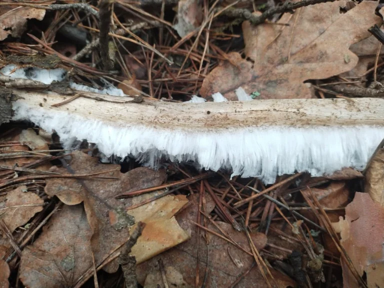 — Влага, выделяемая грибами через поры дерева, замерзает и образует тонкие, длинные нити льда, — отметили специалисты нацпарка. — «Волосы» могут вырастать даже длиной до 20 сантиметров и завиваться в «локоны», однако они очень хрупкие, каждый отдельный волосок имеет диаметр около 0.02 мм. Каким именно образом гриб заставляет лёд кристаллизоваться подобным образом, не совсем понятно, но предполагается, что он продуцирует какой-то ингибитор рекристаллизации, сходный по своему действию с белками-антифризами.
