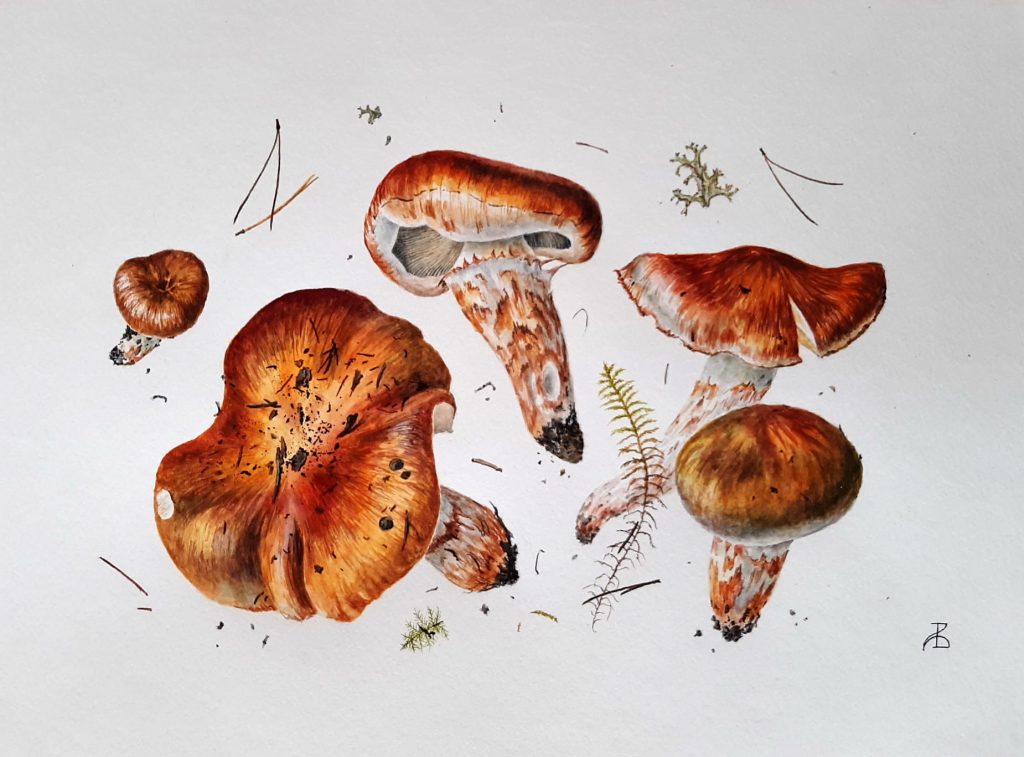 Грибные портреты Александра Вязьменского (СПбМикО). Акварель.Рядовка опёнковидная (Tricholoma focale)