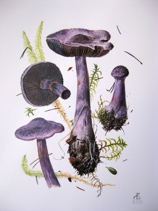 Грибные портреты Александра Вязьменского (СПбМикО). Акварель. ПАУТИННИК ФИОЛЕТОВЫЙ (Cortinarius violacuse)