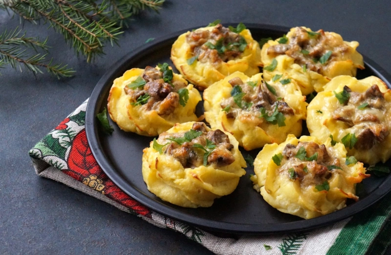 Из таких привычных ингредиентов, как картофель или грибы, нетрудно соорудить настоящий кулинарный шедевр, который получится не только сытным и вкусным, но и украшающим праздничный стол.