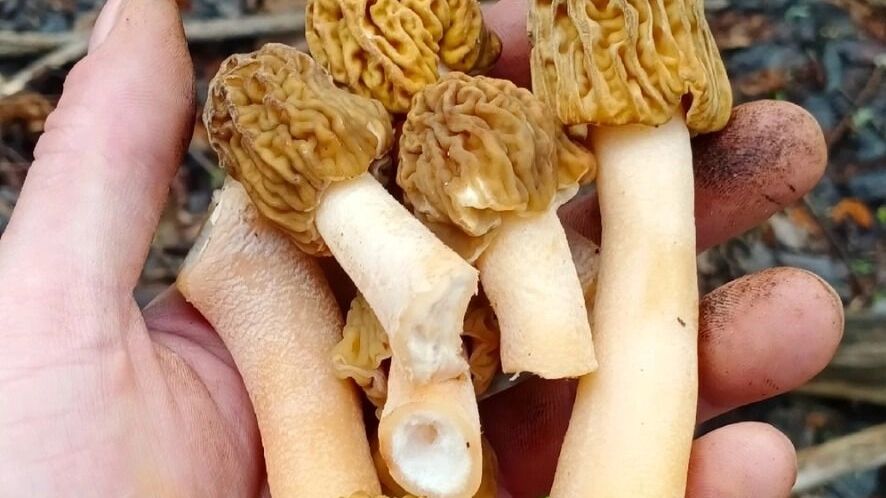«Волна сморчковой шапочки проходит, много уже сухих и старых. Сморчка конического много и он хороший», — сообщает грибник.