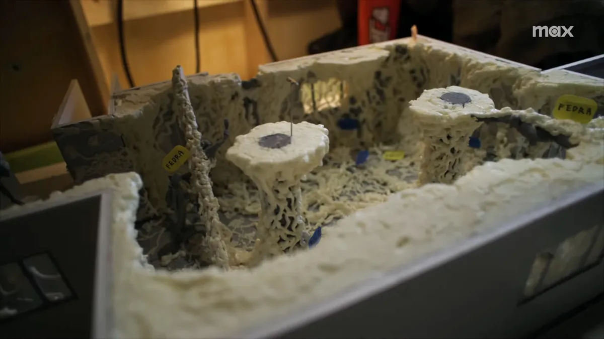 Создатели шоу показали, как снимались эти сцены. Оказалось, это не компьютерная графика: на площадке все выглядело примерно так же, как на экране; декораторы воссоздали грибную пещеру в реальности, сперва отработав все на модели.