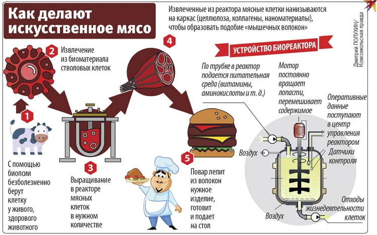 Это продукт «клеточного сельского хозяйства», когда в специальных реакторах, из «неживых» химических компонентов синтезируют плоть «животного».
