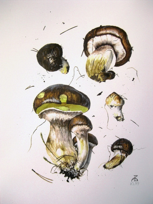 Грибные портреты Александра Вязьменского (СПбМикО). Акварель.Маслёнок обыкновенный (Suillus luteus)