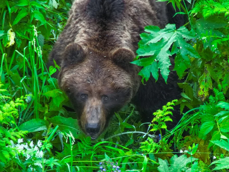 Косолапый на Алтае заглядывает в душу через объектив и жует листочки. Роман и Татьяна Воробьевы