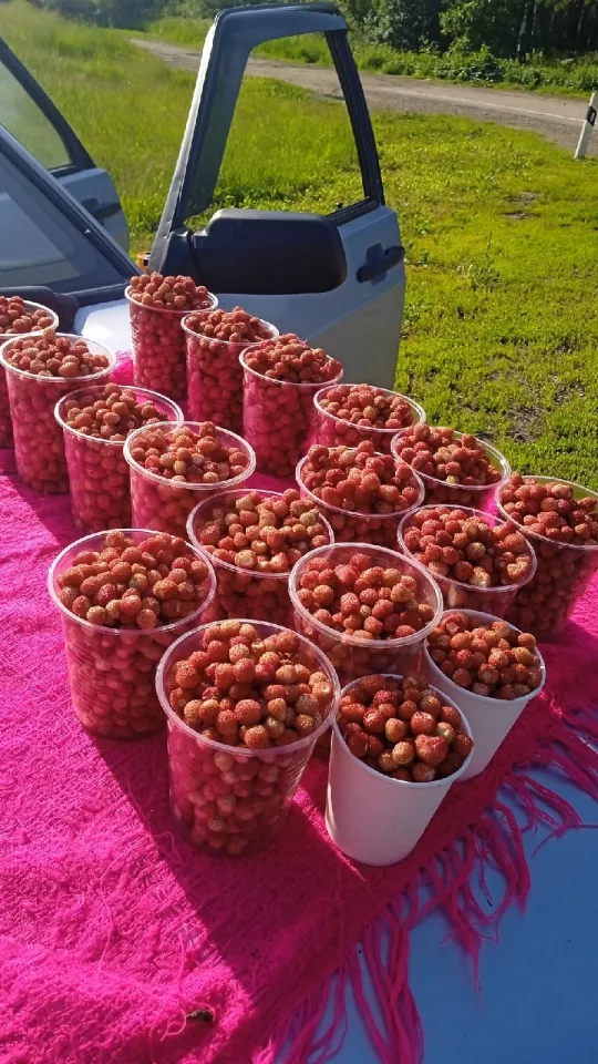Ценник на лесную землянику — 1 тысяча рублей за литр. Высокая цена оправдывается трудозатратами: в лесах много комаров и мошек, а на кропотливые поиски ягоды уходит не один час.