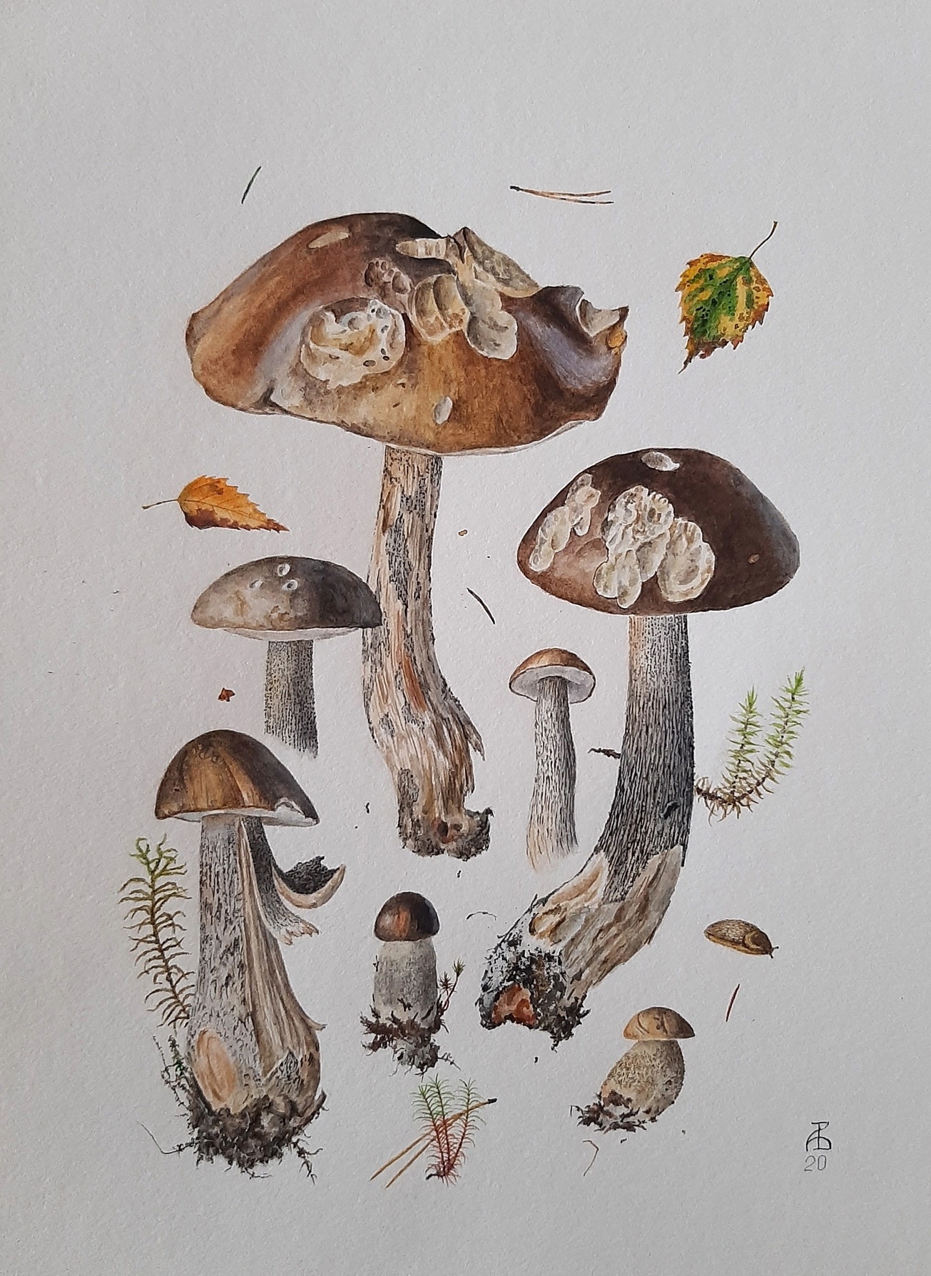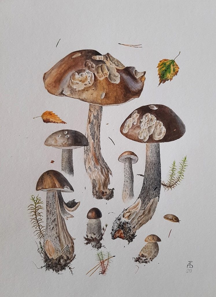 Грибные портреты Александра Вязьменского (СПбМикО). Акварель.Подберезовик обыкновенный — Leccinum scabrum