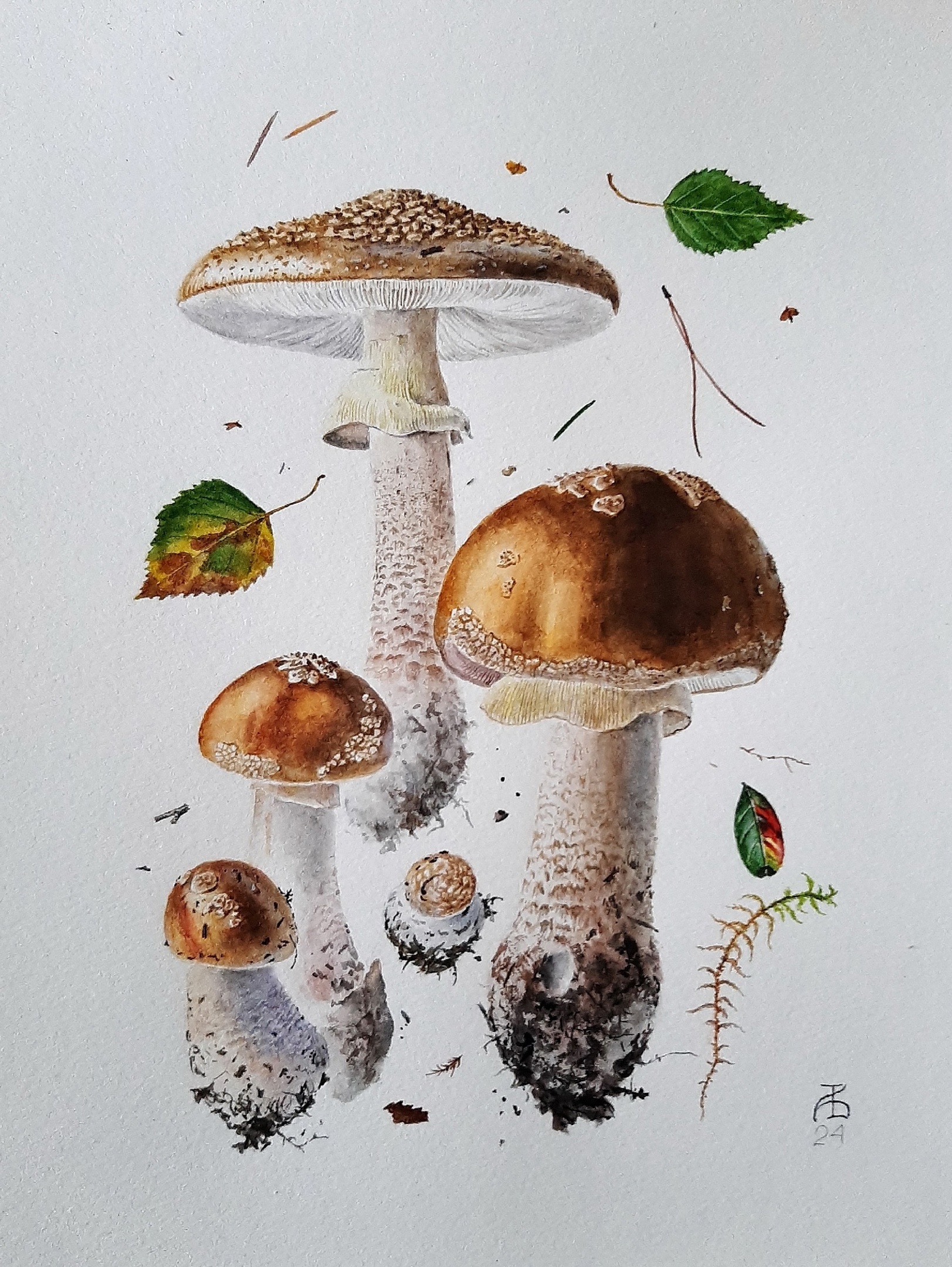 Грибные портреты Александра Вязьменского (СПбМикО). Акварель.Мухомор серо-розовый — Amanita rubescens