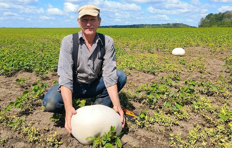 «Ехали вдоль посадки и в поле сои заметили большие округлые предметы. Соя ещё невысокая выросла, сантиметров 20-30 от земли, и крупные белые шары смотрелись среди поля громоздко и неуместно. Сначала подумали, что это мешки с удобрением, но потом засомневались. Любопытство взяло верх, решили остановится и посмотреть, что же это такое. Подойдя ближе, увидели огромные дождевики. Одни были очень большими, как мешки с мукой, другие только-только пробивались из-под земли, размером с детский кулачок», — рассказала Ирина.