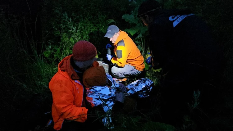 - После окончания нашей задачи, по возвращению в штаб, было принято решение не дожидаться Ветра (доброволец на автомобиле), а самостоятельно добираться, осмотрев еще дополнительную территорию и часть дороги. Пошли проложенным маршрутом, наткнулись на заброшенный лагерь и, обогнув его, выйдя на угол леса, произвели работу на отклик. Результата не было. Просветив окрестности фонарями, заметили в зарослях что-то, похожее в темноте на заросшую дорогу. Обогнув заросли, увидели силуэт человека, лежащего на земле. И тут мы поняли, это наш! Моментально укутали его в одеяла и передали информацию в штаб. На эвакуацию оперативно прибыли поисковики, — вспоминает Игорь Сайгин.