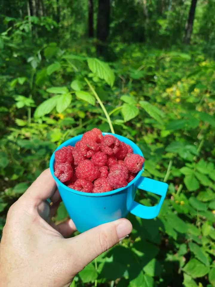 Один из участников группы нашел огромный шампиньон на Колыванском озере, другой собрал в Ленточном бору 2,5 кг малины за два часа