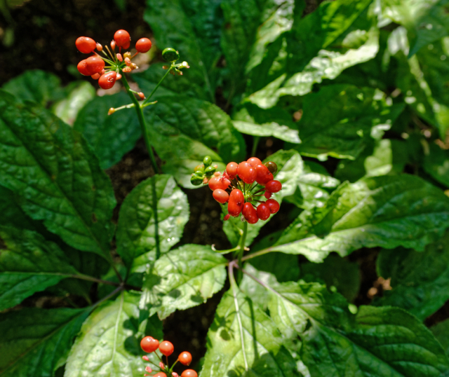Женьшень настоящий (Panax ginseng) — одно из самых известных лекарственных растений. В дикой природе встречается крайне редко, уязвим к сбору и уничтожению. Запрещён к сбору на всей территории страны.