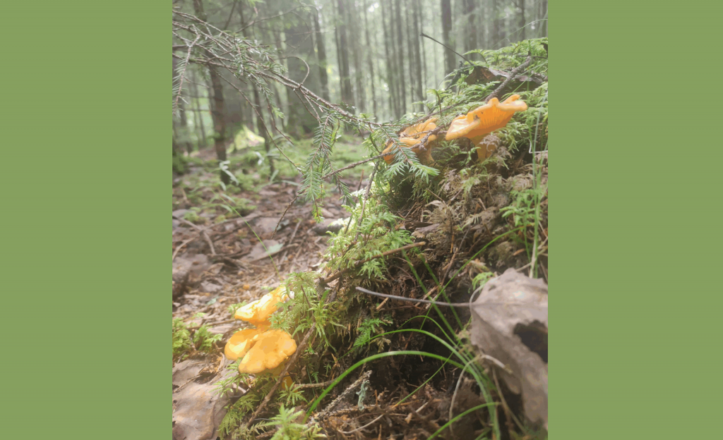 Третья фотография радует глаз тем, что грибочки на ней показаны ещё не срезанными. Посмотрите, какая красота! Причём лисички сразу бросаются в глаза.