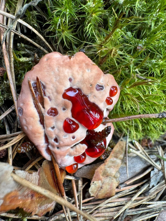 В одну из лесных прогулок жительница Кировской области наткнулась на необычный гриб. О находке она рассказала в группе Грибы Кировской области .Любительница «тихой охоты» не смогла самостоятельно определить, что за гриб ей попался, поэтому спросила мнения у подписчиков. Это оказался довольно редкий экземпляр. Его народное название — «зуб дьявола», другие грибники используют для его описания словосочетания «кровавый зуб» или «клубника со сливками».Известно, что раньше гриб находили только за рубежом, сейчас он встречается и в российских широтах. Благодаря своей жидкости он ловит насекомых и ест. Брать его в руки не рекомендуют.Напомним, что грибник Александр Грачёв продемонстрировал впечатляющий урожай грибов, собранный в лесу.