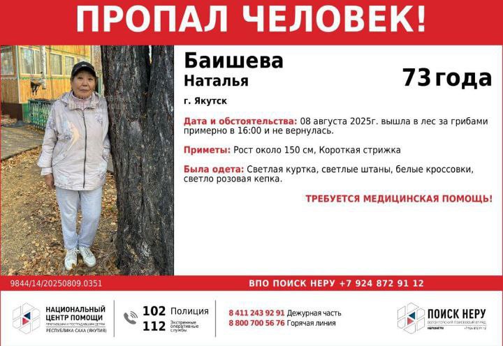 Подробности: https://sakhaday.ru/news/v-yakutske-ishchut-natalyu-baishevu-ushedshuyu-8-avgusta-po-griby?from=copy