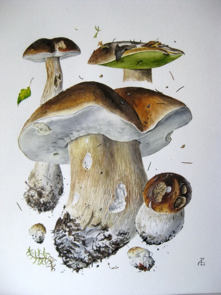 Грибные портреты Александра Вязьменского (СПбМикО). Акварель.Белый гриб — Boletus edulis
