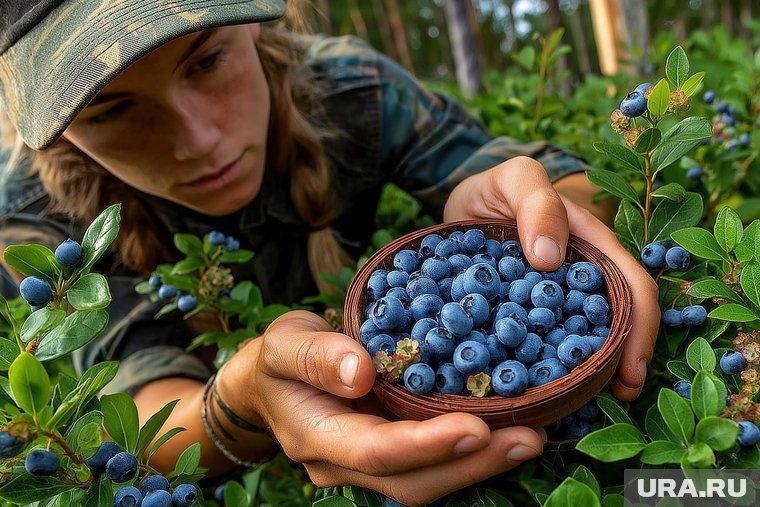 Сбор черники происходит в июле-августе, когда ягоды созревают Создано в Midjourney © URA.RU