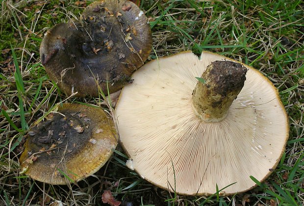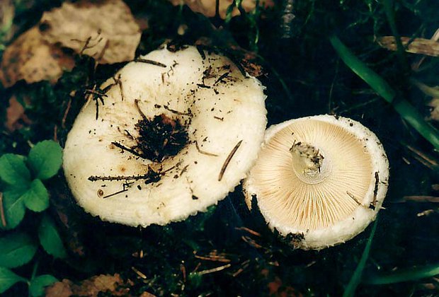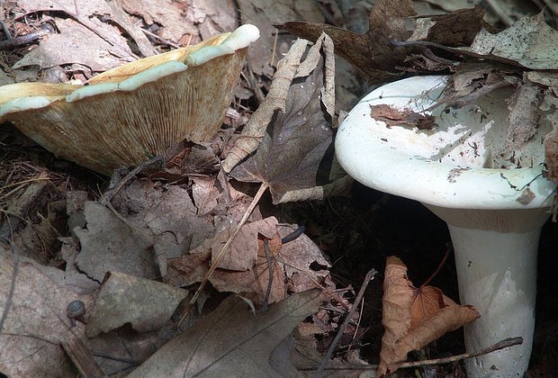 Перечный груздь. Имеет белую шляпку. Главный признак — на воздухе млечный сок становится оливково-зеленым или голубоватым. Этот гриб можно использовать в сушеном или молотом виде как острую приправу из-за его вкуса, но только после длительной обработки.