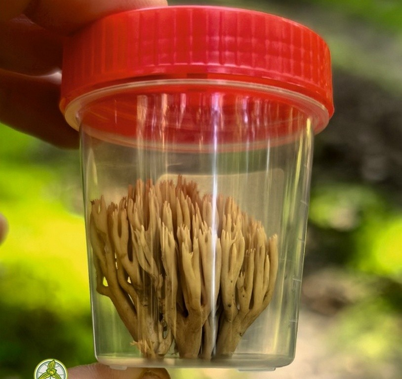 Пока проект находится в стадии разработки, специалисты отрабатывают технологию на распространённых видах – белых грибах, лисичках и сыроежках. Недавно сотрудники КГУ Евгений Константинов и Виктор Чернов вместе с заместителем директора нацпарка Александром Рогуленко собрали первые образцы для экспериментов, включая редкий гриб-рогатик.