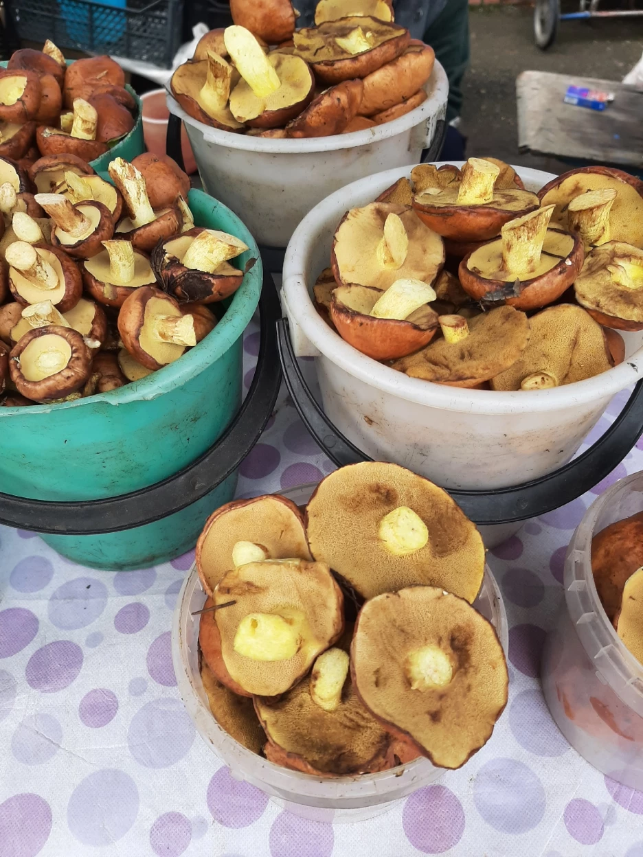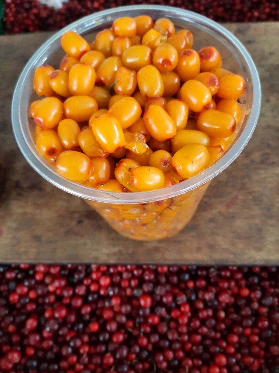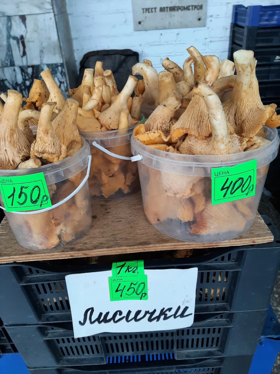 На Новом рынке продают маслята, лисички, опята и белые грибы. Также облепиху и бруснику.