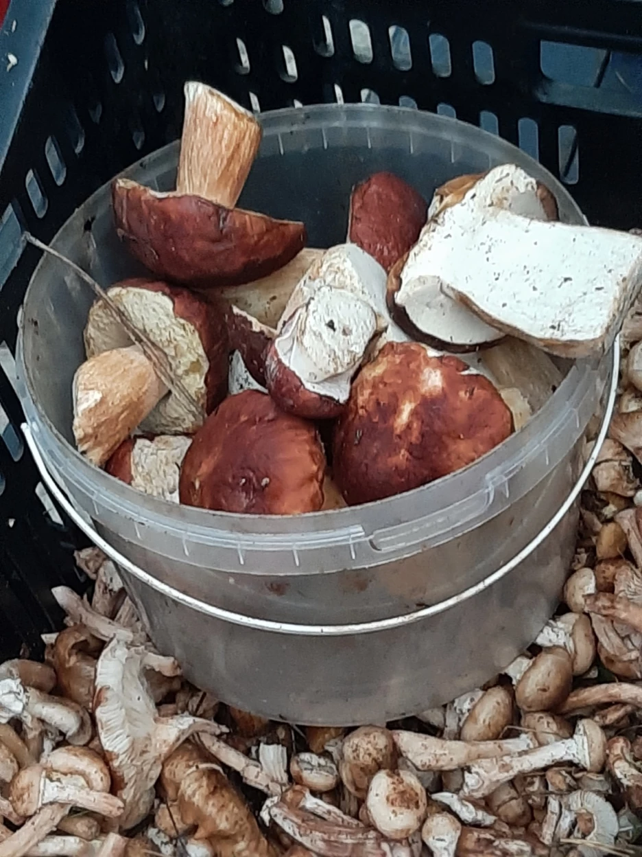 2 литра белых грибов продают за 1200 рублей. На развес за 600 рублей.