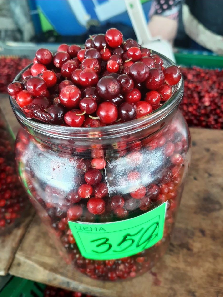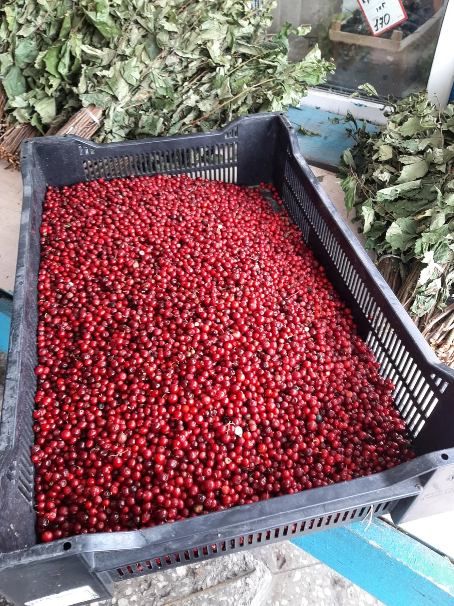 Большое ведерко опят стоит 200 рублей. Но кроме грибов, на рынке продают бруснику и облепиху. Литровая баночка брусники стоит 350 рублей.