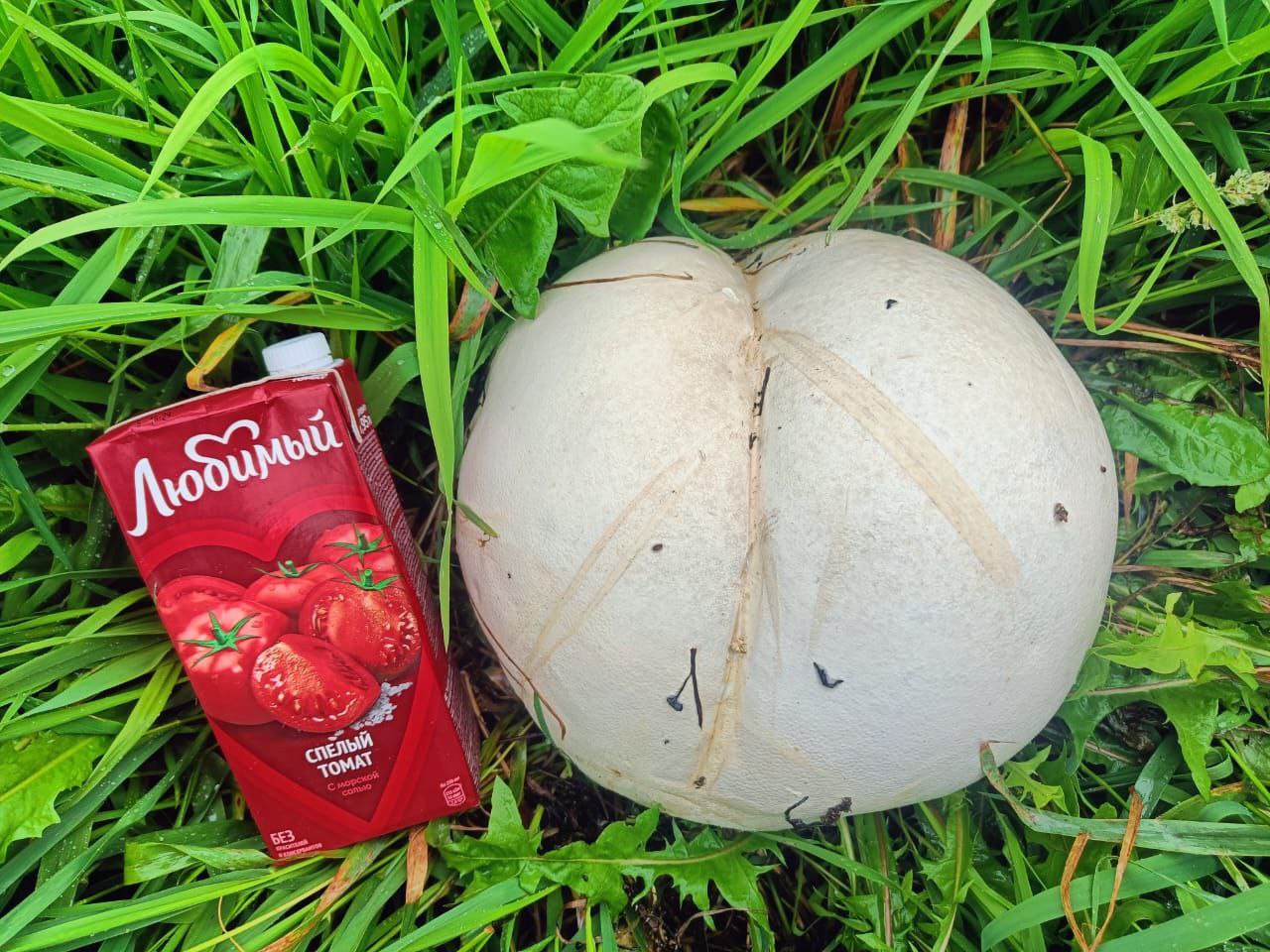 Огромный гриб (второе название которого дождевик) напоминает по форме футбольный мяч, он может достигать 80 см в диаметре и весить несколько килограммов.