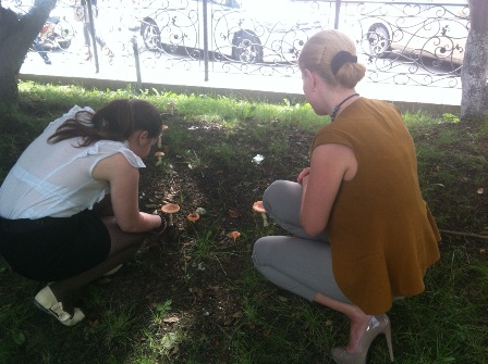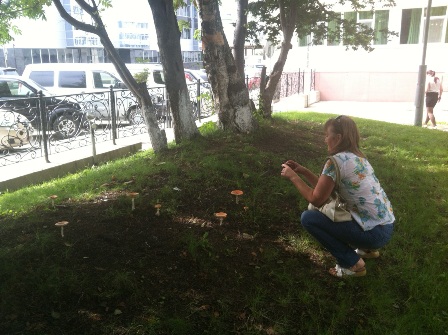 Автор фото: Светлана Жбанова Прохожие, замечая грибы на газонах, останавливаются, чтобы сфотографировать их, Фото с места события собственное