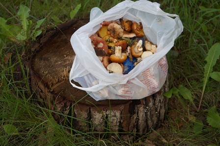 Женщина набрала полиэтиленовый пакет грибов, гуляя с внуком возле дома, который находится возле корпуса восточного факультета Сахалинского государственного университета. На это Лидии Федоровне понадобилось совсем немного времени – всего 15 минут. Через два дня, по ее словам, сюда за грибами можно будет вернуться вновь.