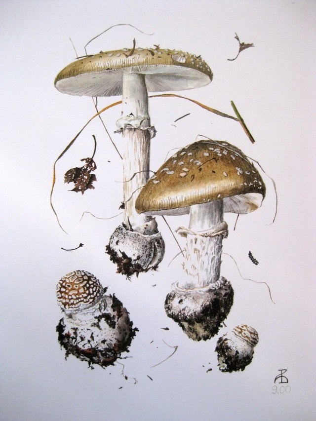 Грибные портреты Александра Вязьменского (СПбМикО). Акварель.Мухомор пантерный (лат. Amanita pantherina)