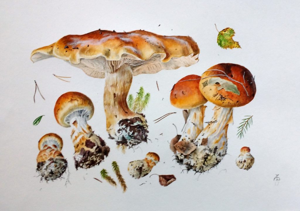 Грибные портреты Александра Вязьменского (СПбМикО). Акварель.Паутинник жёлтый, триумфальный (Cortinarius triumphans)