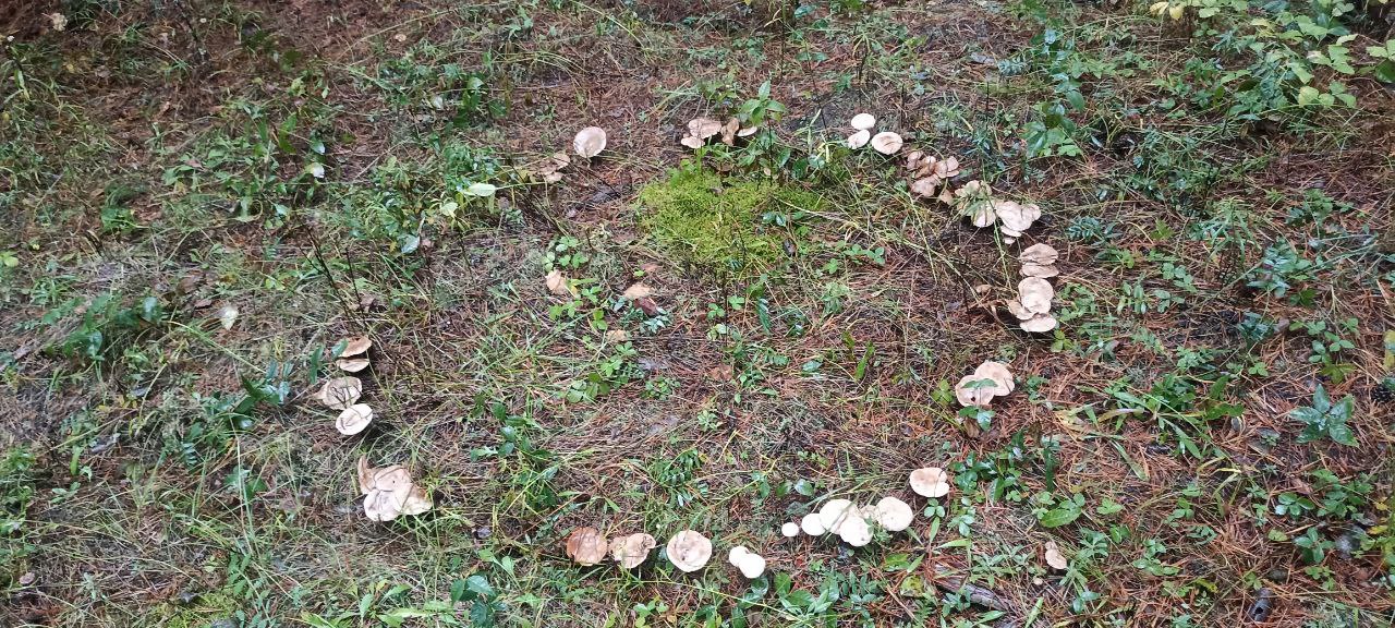 Кольцо из поганок заметил замначальника Минусинской лесопожарной станции Максим Дрюков в окрестностях города. В прошлом году оно уже попадалось на глаза, но в другом месте.