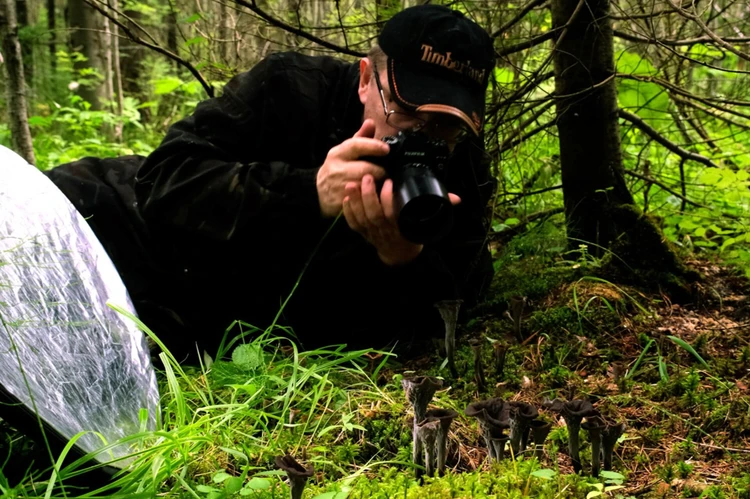 - Ложусь животом на землю, утыкаюсь носом в пень, корягу или бревно, и всматриваюсь, сканирую, а заметив что-то необычное, фотографирую, — рассказывает грибник.