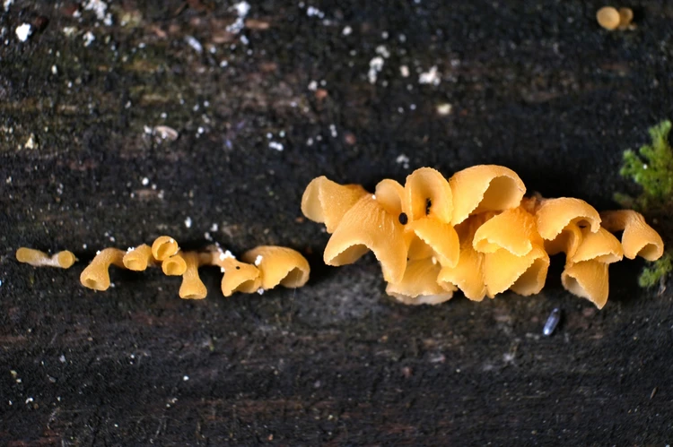 Грибы Гепиниопсис трубчатый (Guepiniopsis buccia) напоминают желатиновые трубочки. Фото: предоставил Евгений Ефимов