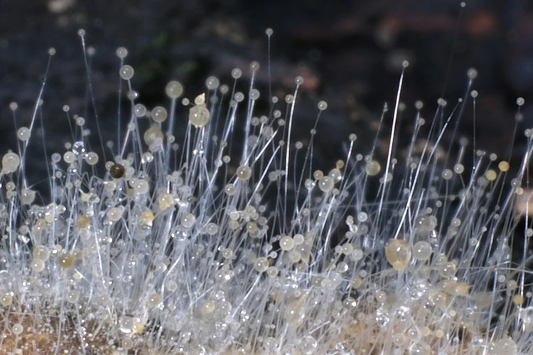 А так в увеличении выглядит белая плесень Мукор. Будто сотни росинок, правда? Фото: предоставил Евгений Ефимов