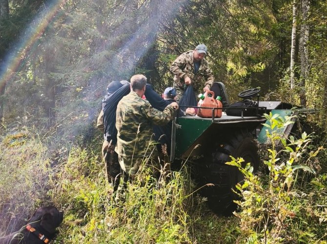 Днём, 11 сентября, кинологический расчёт обнаружил женщину на отклик. Состояние её оценивается, как удовлетворительное. Днём она пыталась найти дорогу домой, иногда дремала, а ночью стучала веткой по ведру, боялась медведей.