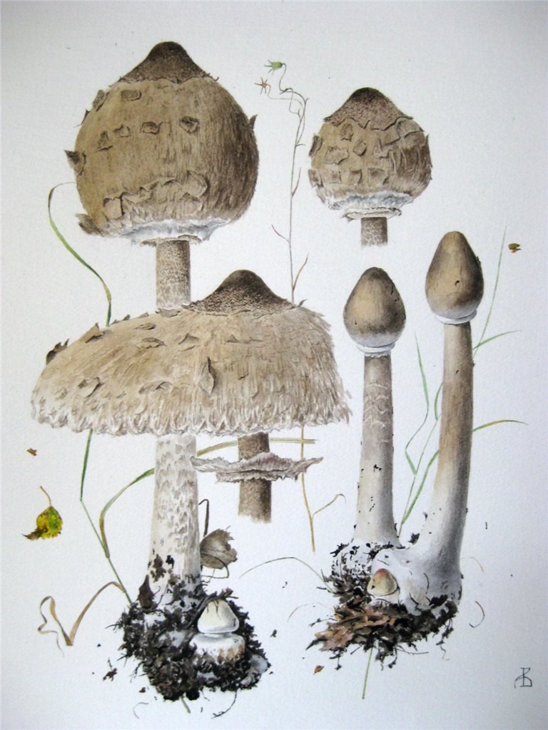 Грибные портреты Александра Вязьменского (СПбМикО). Акварель.ЗОНТИК ПЁСТРЫЙ (MACROLEPIOTA PROCERA)