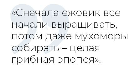 — Думаю, в последнее время люди начали уделять больше внимания здоровому образу жизни. И такой источник, как грибы, многих стал интересовать. В России этот грибной бум начался 4-5 лет назад. Сначала ежовик все начали выращивать, потом даже мухоморы собирать — целая грибная эпопея.
