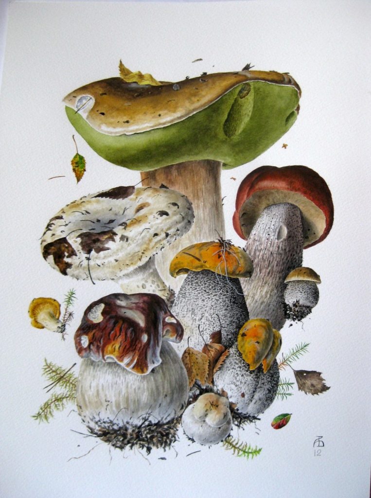 Грибные портреты Александра Вязьменского (СПбМикО). Акварель.