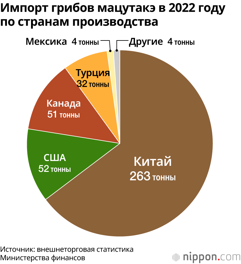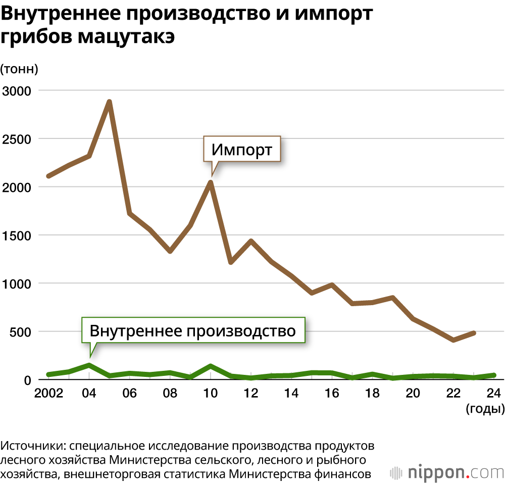 В настоящее время более 90% грибов мацутакэ, реализуемых в Японии, импортируются из-за рубежа, причем на долю Китая приходится более 60% импорта, а в последние годы растет объём импорта грибов из США и Канады.