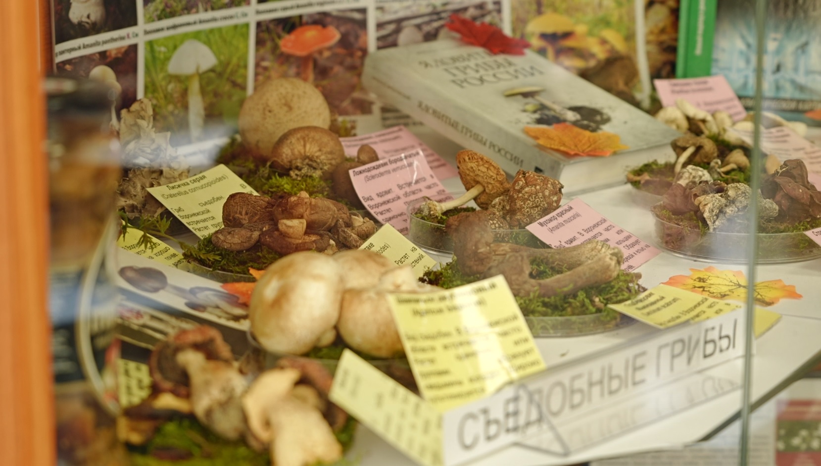 Среди самых ценных экспонатов – кордицепс. В азиатских странах его считают чуть ли не панацеей. Спасти может, уверяют, от 23 болезней. И, между прочим, растёт и у нас. Почти всё, что в витринах – местные виды.