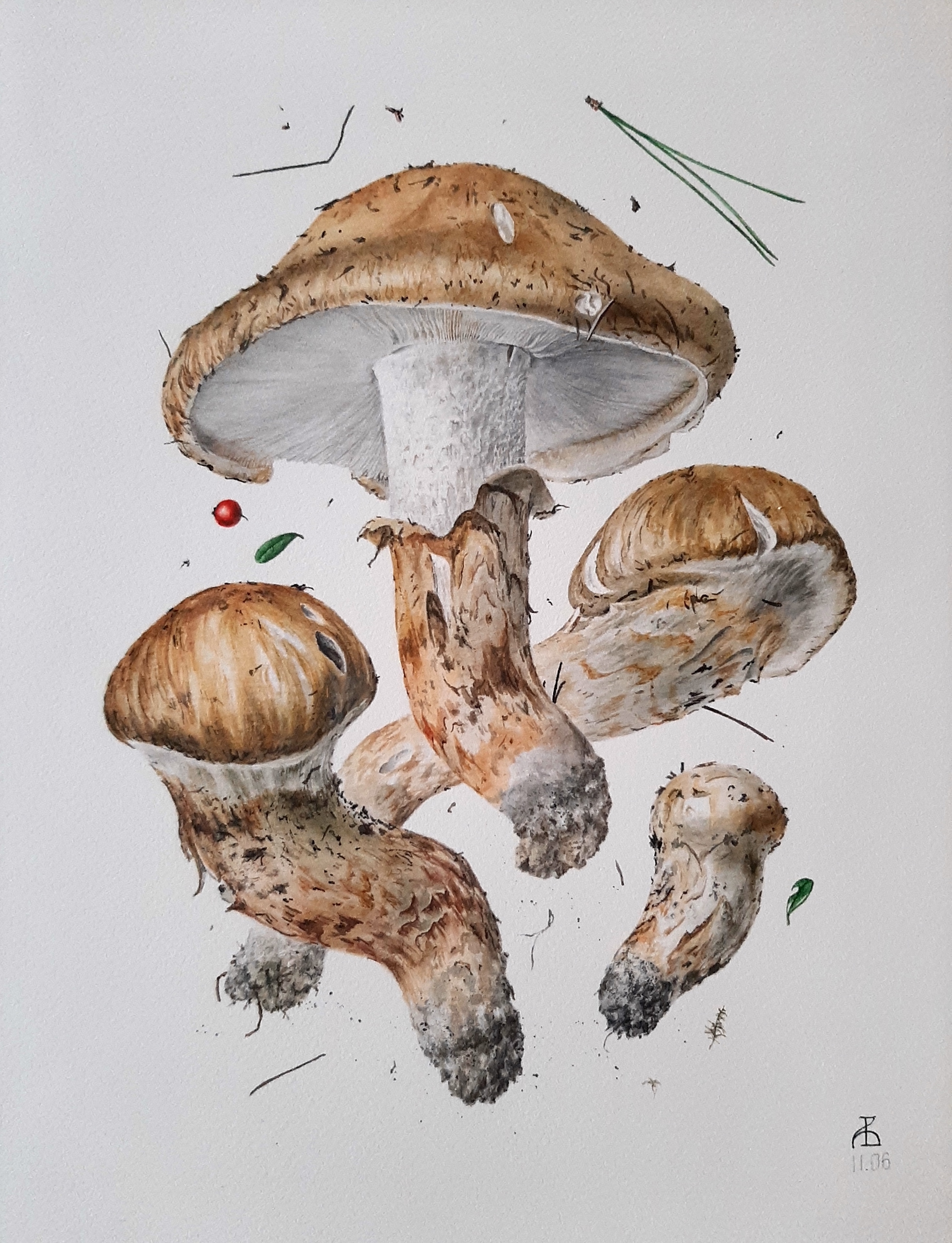 Грибные портреты Александра Вязьменского (СПбМикО). Акварель.Мацутакэ (Tricholoma matsutake)